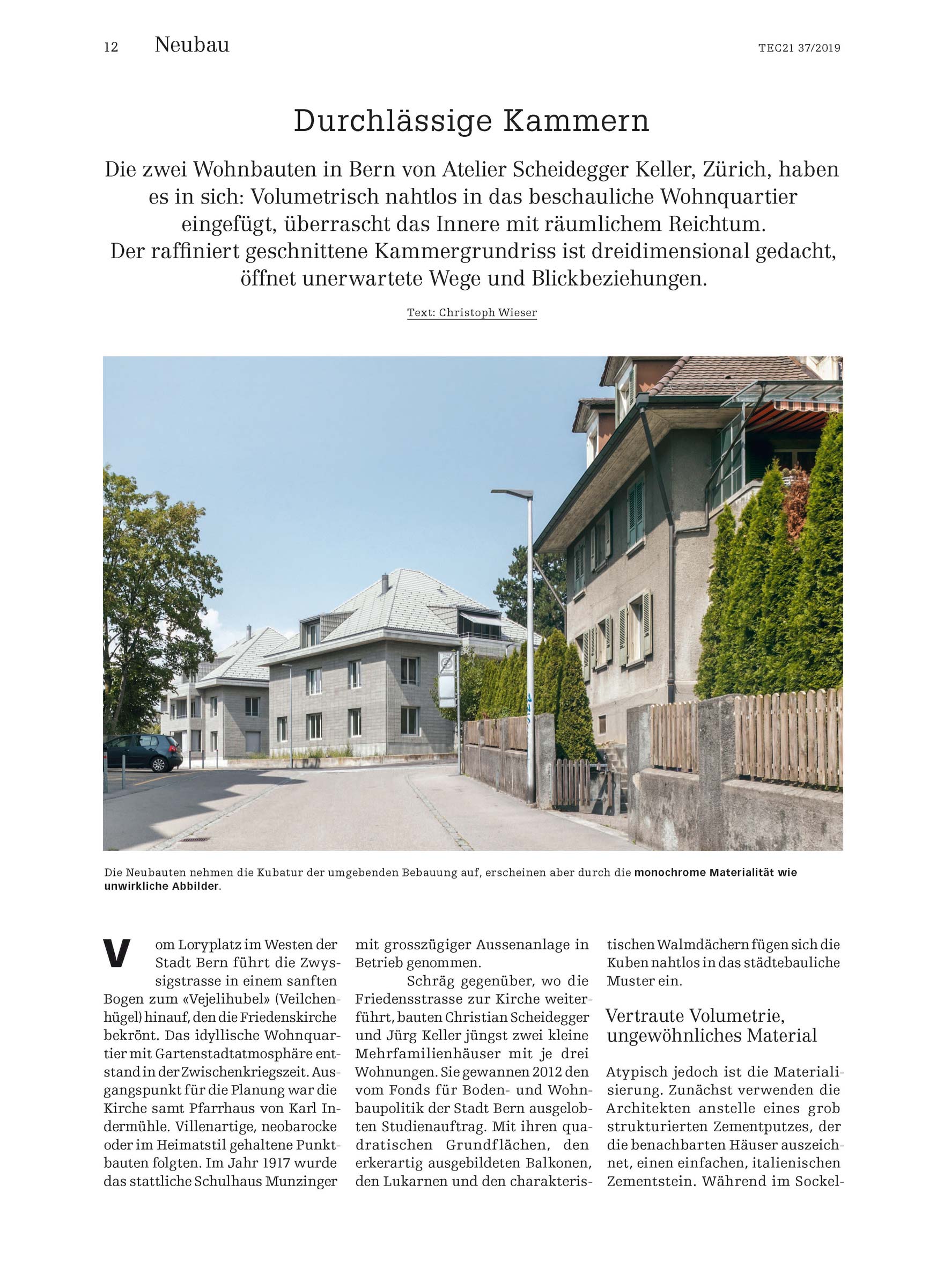 Die zwei Wohnbauten in Bern von Atelier Scheidegger Keller, Zürich, haben es in sich: Volumetrisch nahtlos in das beschauliche Wohnquartier eingefügt, überrascht das Innere mit räumlichem Reichtum.
