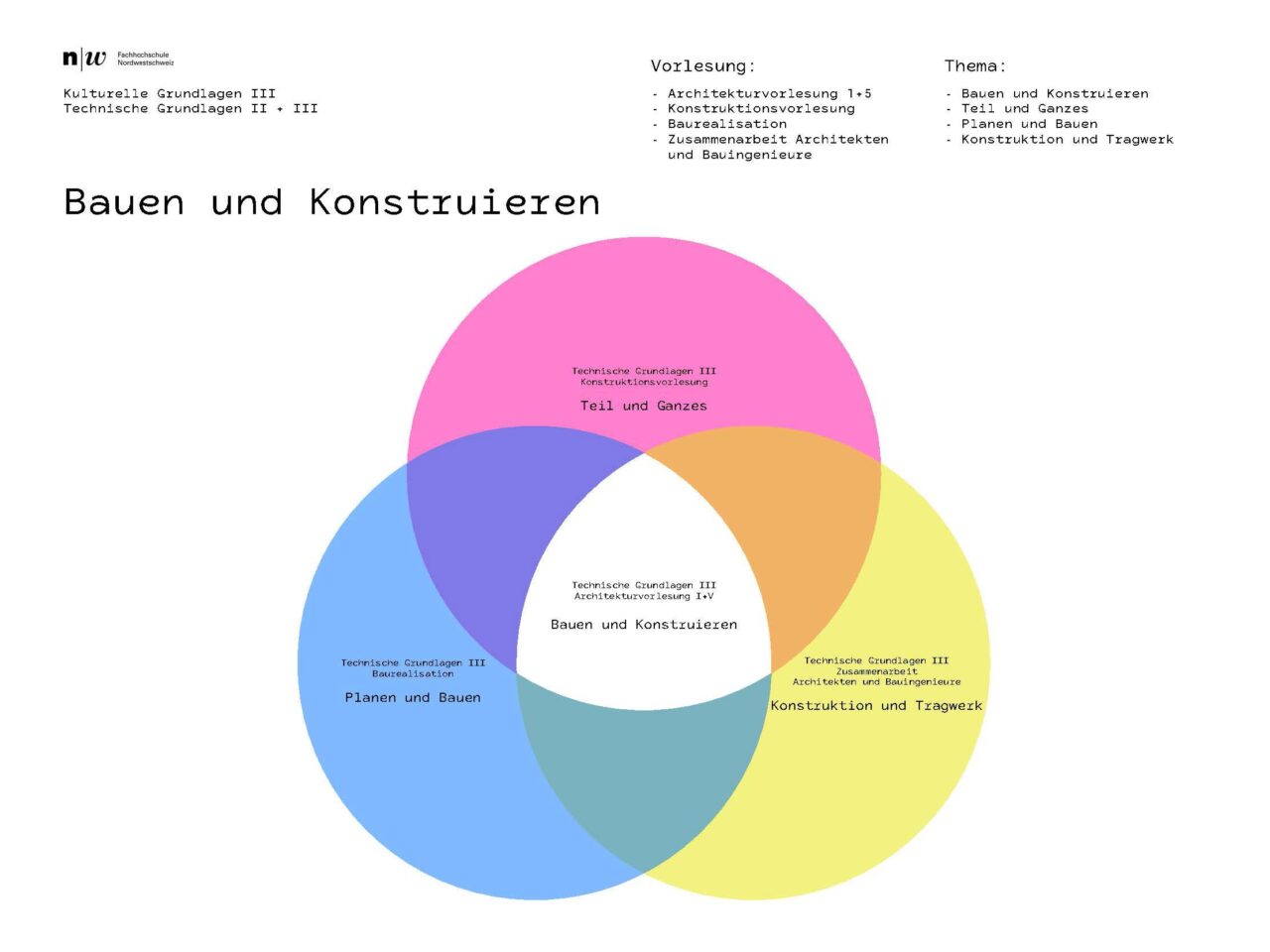 Während Konstruktion im 2. Studienjahr angesiedelt ist, unterrichtet Marco Merz Baurealisation und Zusammenarbeit Architekten-Ingenieure (ZAB) im 3. Studienjahr. Die Vorlesungsreihe AEK 1+5 fungiert somit als thematische Klammer über die Semestergrenzen hinweg und ermöglicht einen vertieften Austausch zwischen den Fachbereichen.